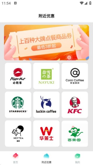 4、附近优惠,提供了不同商家的优惠信息,大家可以根据自己的需求去点击获取的。