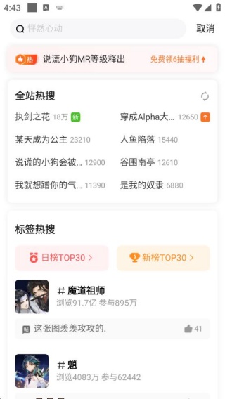 5、你可以通过获取排行榜动态查找当下最受欢迎的漫画