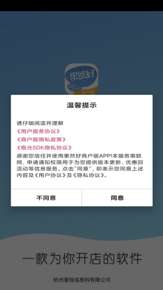 1、下载安装APP后打开软件,提示同意与否,点击同意进入;