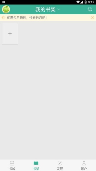 2、进入到书架后,就可以将自己喜欢的书籍添加到书架收藏。