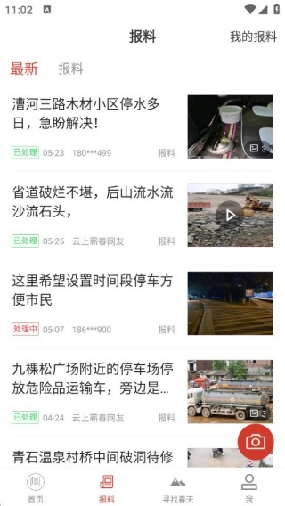 2、点击报料,有最新的报料信息更新,便捷就可以解决。