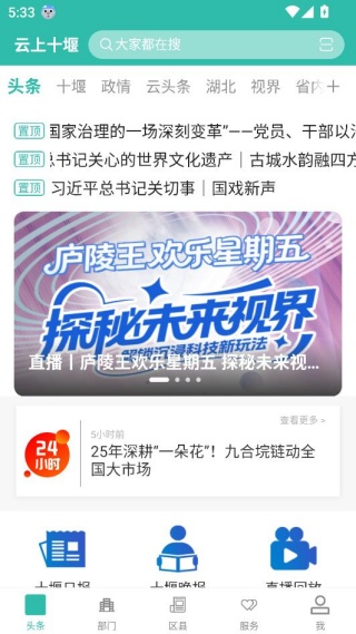 云上十堰app是咱十堰市专属的新媒体服务软件哦!它把全市的新闻、政务、服务等各类信息都整合到一起啦,给大家打造了一个超权威的移动新媒体服务平台。有了它,随时随地都能查到好多优质服务,最新最热的新闻随手就能看,轻松掌握身边大小事儿,不出家门就能知晓天下大事。还能查到各政务部门领导信息,了解相关专辑情况,看新闻更有针对性。另外,这里还有超多生活服务等你来享,赶紧下载云上十堰app安装使用吧!