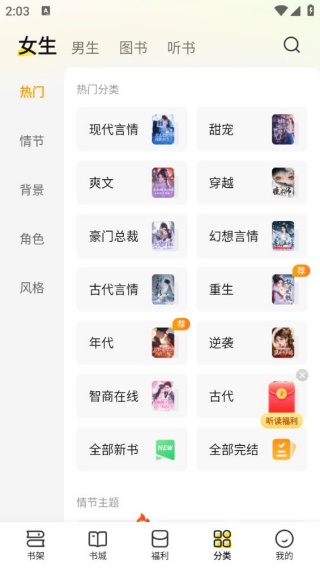 2、还可以通过分类去搜索喜欢的小说,随时随地便捷去阅读。