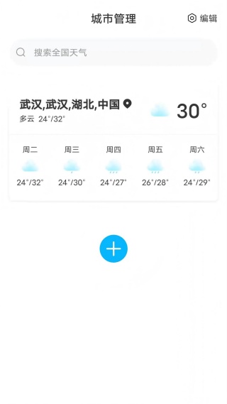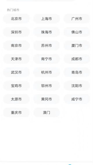 1、进入应用之后点击城市可以自由选择需要查看的城市天气;