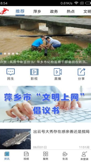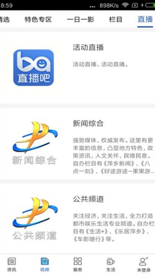 1、资讯,实时为你推送本地新闻资讯,自由阅读;