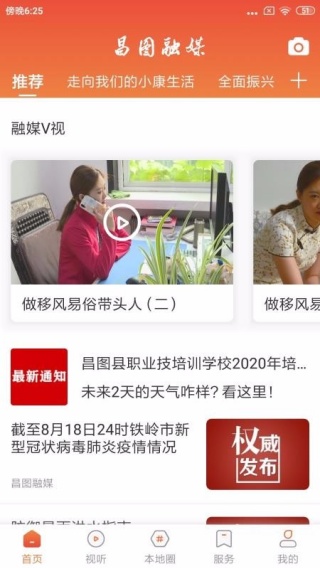 2、首页有各种推荐资讯提供,还可以去进行融媒V视的观看,资讯获取便捷。