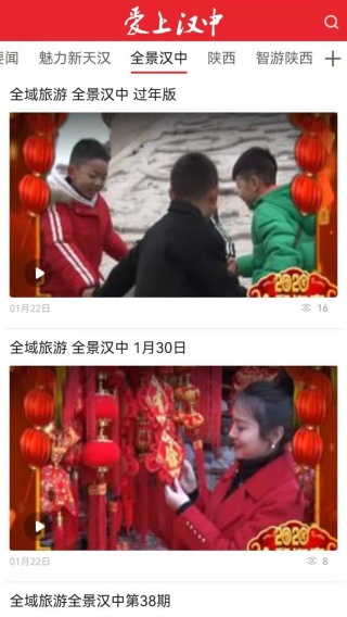 3、进入到全景汉中的界面,各种视频动态一目了然,及时高效去观看。