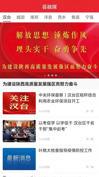 4、县融媒界面,是可以去获取汉台的内容,都可以直接轻松点击掌握。