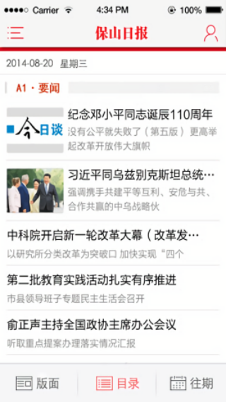3、还可以点击目录去阅读新闻,直接点击标题进入详情中阅读。