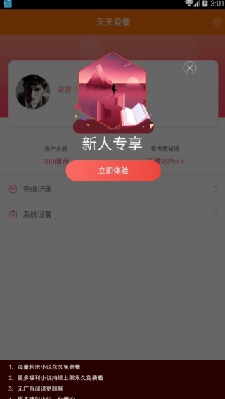 3、新用户是可以领取新人专享福利,阅读小说精彩不断。