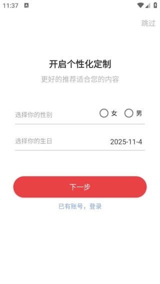 2、进入到个性化定制的界面,提供所需的内容,更好的为你推荐。