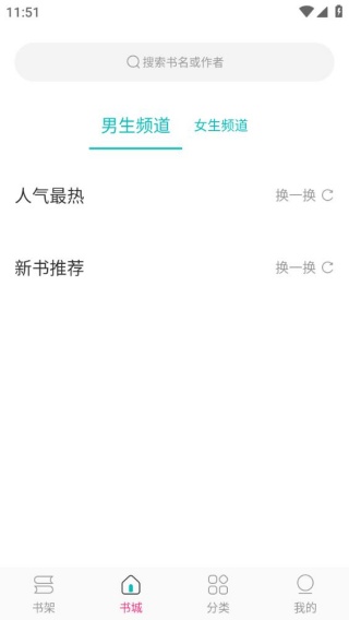 3、书城有男生频道,女生频道的分类,根据自己的喜欢去选择。