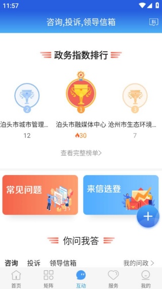 3、进入到互动界面,随时都是可以去开启政务互动,服务全面。