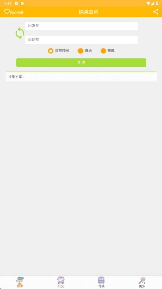 1、安装app进入换乘页面,输入起始点,获得换乘方案;