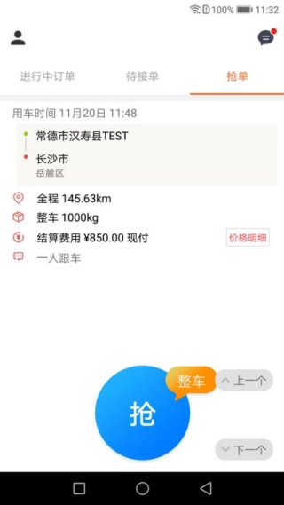 3、操作流程极为简便,仅包含抢单、接单和运单三个流程;