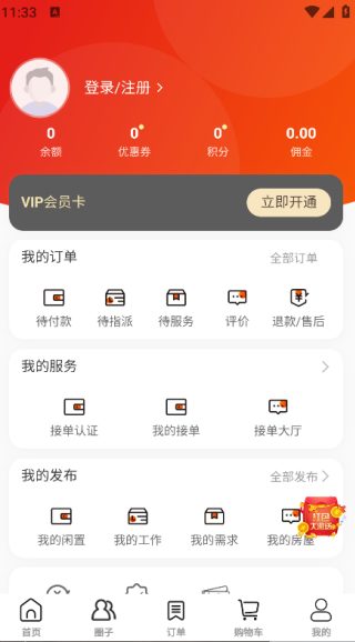 4. 点击页面下方的‘我的’,能看到我的订单、我的服务、我的发布等功能。