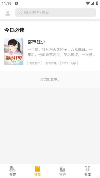2、进入平台推荐界面,有今日必读资源,直接点击即可阅读小说。