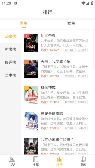 4、排行榜单中有男生、女生等资源分类,方便大家实时开启阅读。