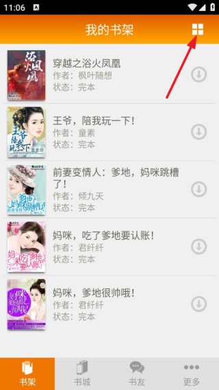 2、点击右上角设置图标可切换书架展示模式,支持列表/网格等多种视图