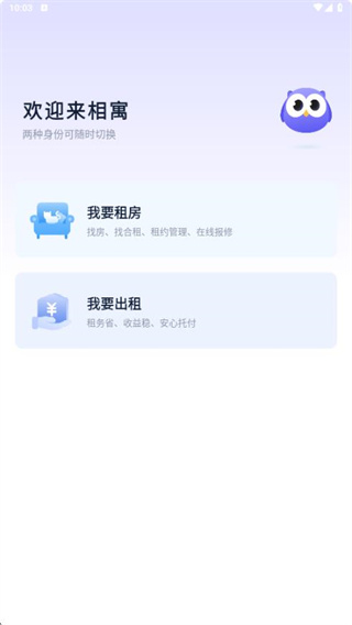 2、根据需求选择"我要租房"或"我要出租"功能模块,此处以租房流程为例;