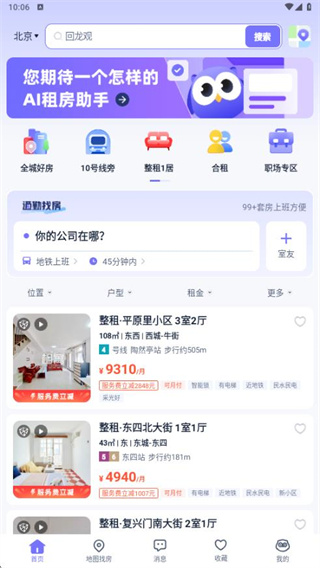 3、区域精准搜索:可通过地图定位或行政区划筛选目标区域房源