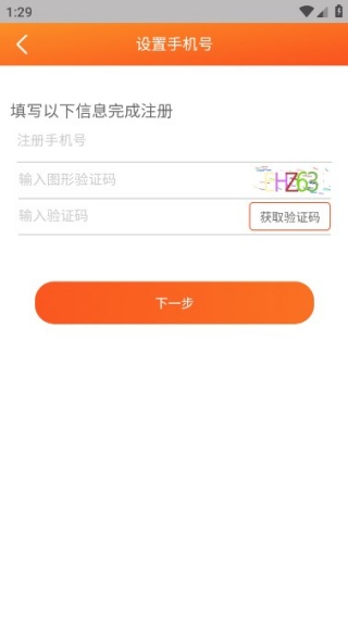 2、新用户注册:填写手机号→获取验证码→设置密码→完成注册