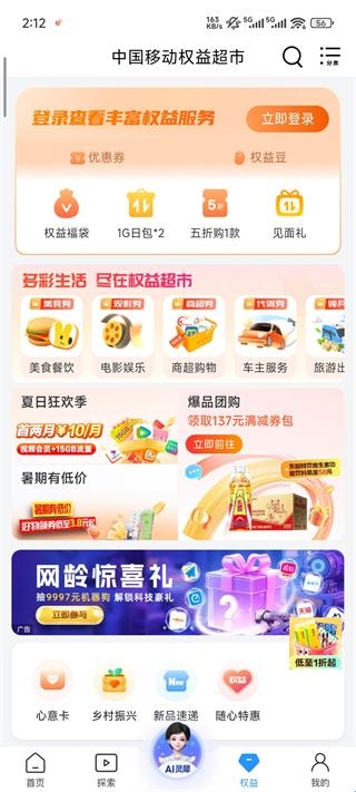 整合积分商城、特惠活动、生活缴费、营业厅导航等便民服务,构建"服务+权益"生态体系