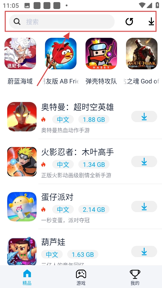 也可在上面的搜索框中输入游戏名进行搜索。