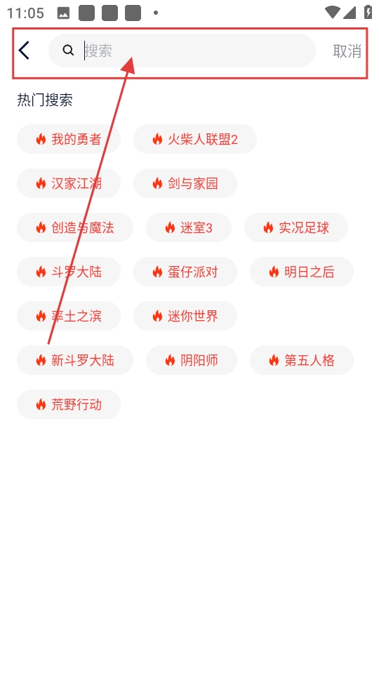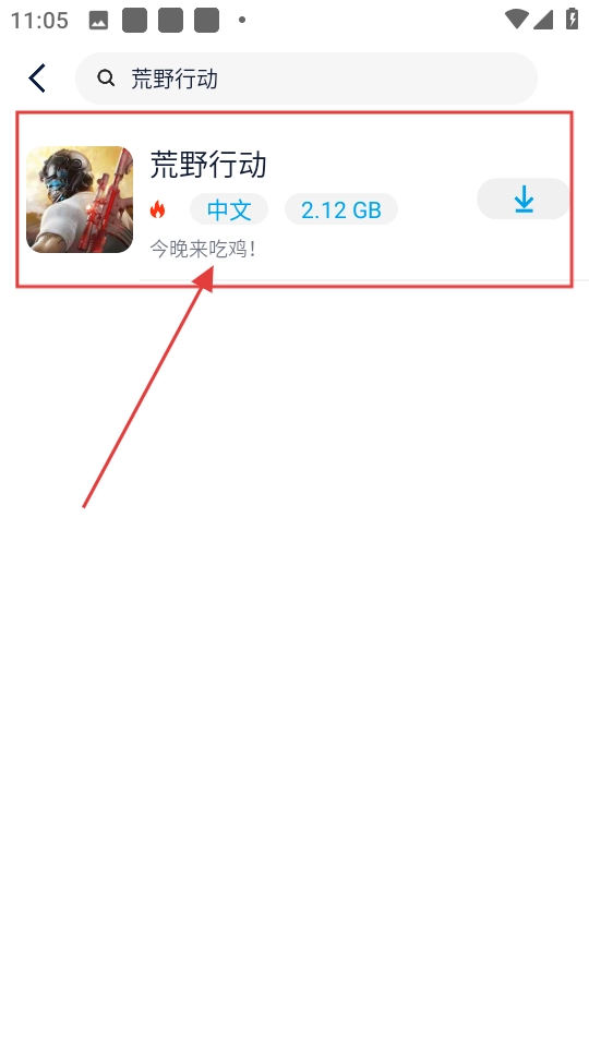 进入搜索页面后,在搜索框输入游戏名称,如【荒野行动】,即可看到相关搜索结果。