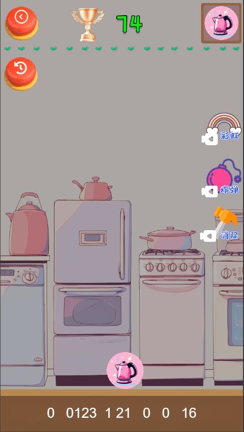3、消除屏幕上的所有厨房用具后,即可顺利通过关卡。玩起来太让人上瘾了,根本停不下来;