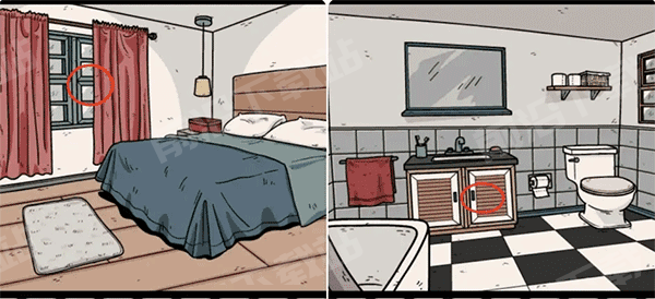 1、卡丽莎视角,先观察卧室窗户上的符号(房子各个场景窗户上有类似符号)后面会用到,四处搜索在二楼卫生间的柜子里找到一只收集要素。