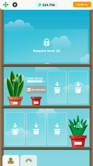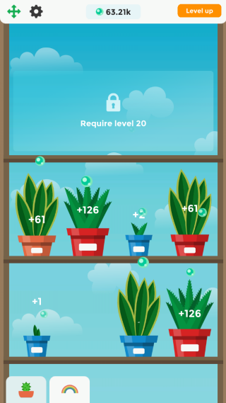 3.随着游戏画面中氧气球的增多,玩家能让自己的小盆栽能快速的成长,在这个过程中的你要通过更多的氧气球球完成一系列的挑战,顺带一提的是等级越高你种植的盆栽也就会越来越高级。