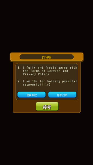 1.进入后需要接受隐私条款才能够继续游戏。