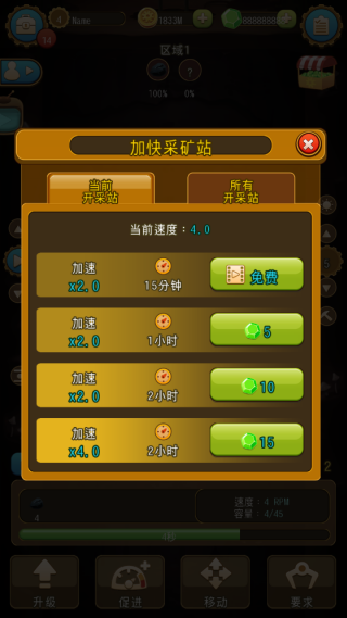 3.升级采矿站的采矿速度,能够赚取更多金币,从而拥有足够的资金解锁更多的挖矿区域。