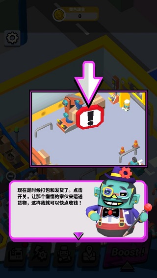 现在是时候打宝和发货了,点击开关,让那个懒惰的家伙来运送货物,这样我们就可以快点赚钱啦!