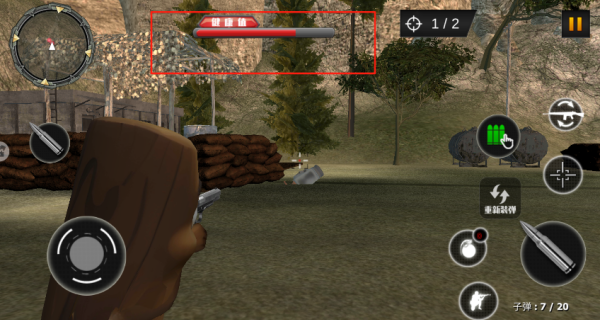 4、时刻关注上方血条,射击时注意躲避敌人进攻,保持血量。