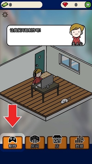 1.进入游戏你会发现你的房间目前一无所有。现在你需要通过开发游戏软件来赚取金币。