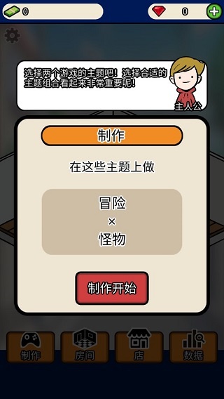 1.在挑战中的你要努力的成为一名游戏开发大亨,现在你要开始制作并选择这两个游戏的主题,挑战中的你要选择合适的主题组合,这是非常重要的。