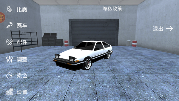 1.进入到游戏之后,主界面上有比赛、赛车、配件、调整等多种选项。