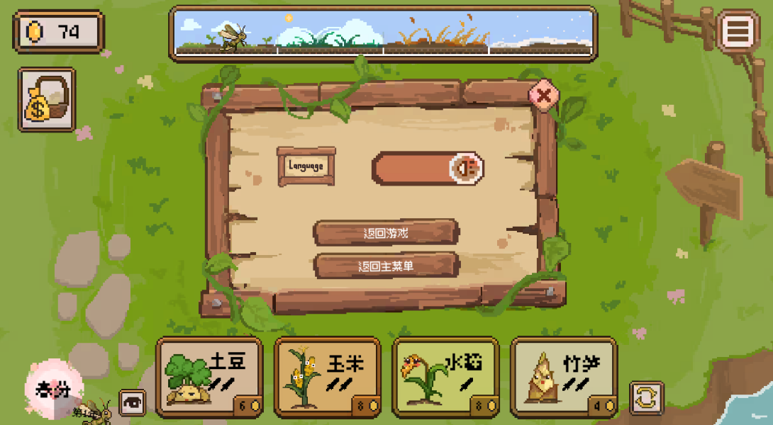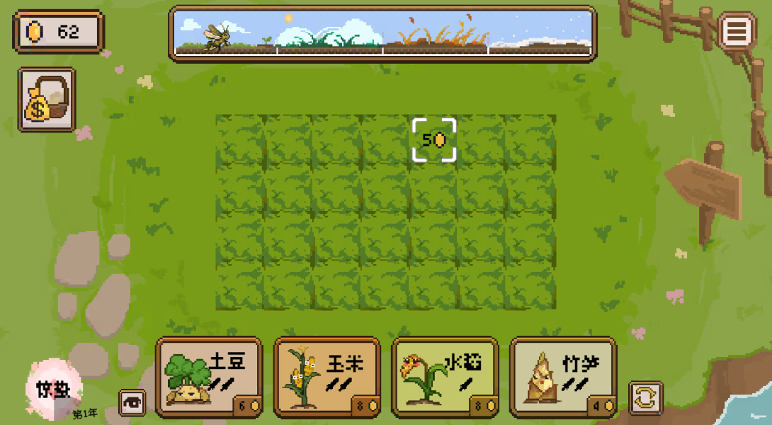 3.作物成熟后,玩家可以将其收获并出售,获得金币和资源。