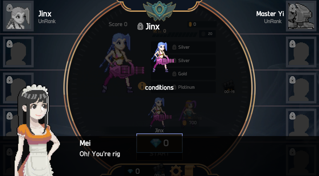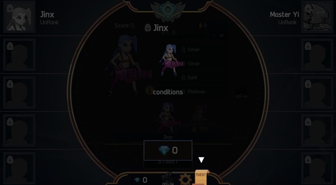 3.以2d画面为基础的横版冒险类型游戏,作品中拥有不同的英雄联盟角色,你能在游戏中选择使用,像素的画面使得作品比较容易操作,而且你能通过移动和跳跃攻击对抗英雄联盟中的各种野怪和小兵。