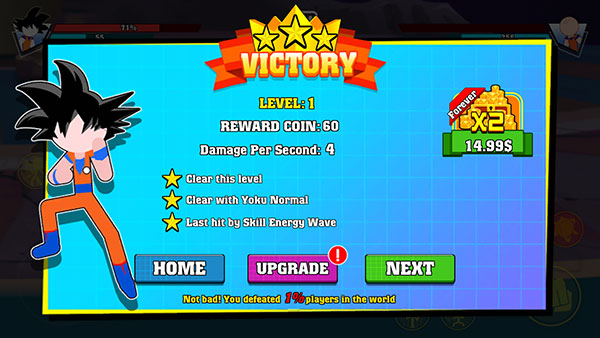 2、对火柴人进行控制,在达到了一定的水平后你就能得到游戏奖励,该作中的游戏操作非常简单,而且没有一点的花哨元素,你要更加直观的了解游戏中的挑战方法。