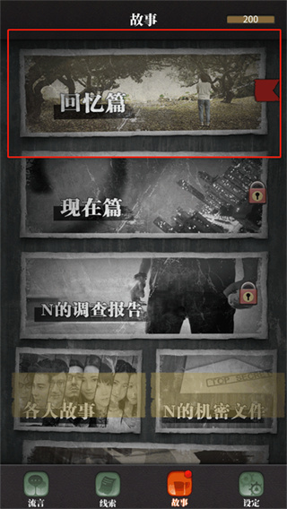 2、故事人物已经把回忆篇写好了,咱们赶紧去看看。点点小编箭头指的地方,就是“故事”,第一个就是“回忆篇”,看看里面都写了啥事儿。