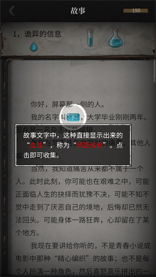 6、那隐藏线索咋找呢?要是你觉得某个线索有点意思,就用小显隐药水。要是这字真是线索,就会冒出红血珠;要是不是,那就接着找呗。用小显隐药水不费精力,放心用。
