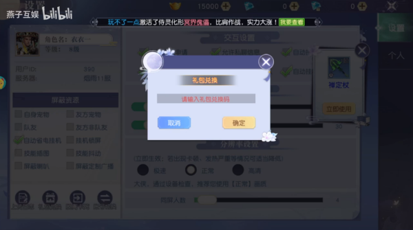 3、关注游戏的礼包兑换功能,在设置界面找到 “礼包兑换” 入口,输入有效的礼包兑换码,可获取丰厚的游戏道具、资源等奖励。