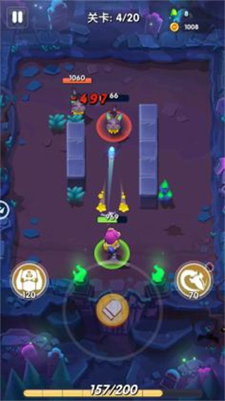 2、搭配各种不同的道具,和好友默契配合展开决斗,灵活闪避敌人的攻击。