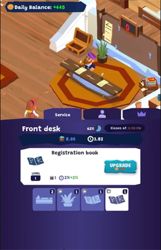 1- 玩家可以不断努力去升级自己的酒店,同时为更多客人腾出空间并赚更多的钱;
