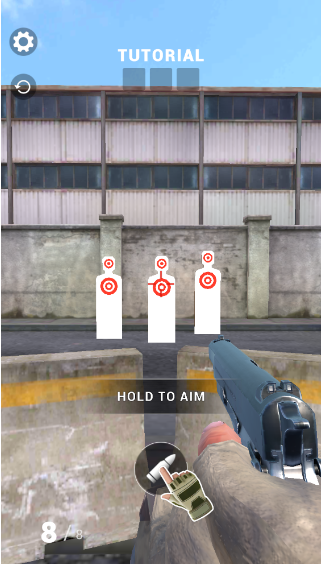 2.按住屏幕中间的子弹图标,然后滑动屏幕移动准心,对准目标后松开手指即可开枪。