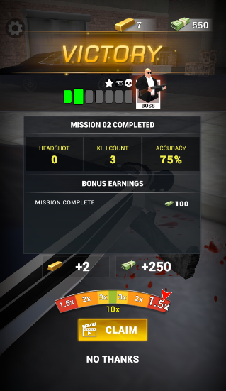 3.消灭所有目标即可获胜,通关后能获得钞票和金块奖励。