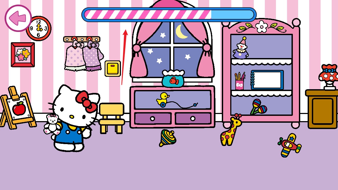1.首次打开游戏,玩家将看到Hello Kitty站在缀满星星的窗边,微笑着挥手欢迎。